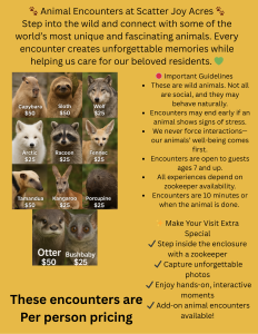 Animal Encounters can be added to Open Public Zoo Hours Monday-Saturday
